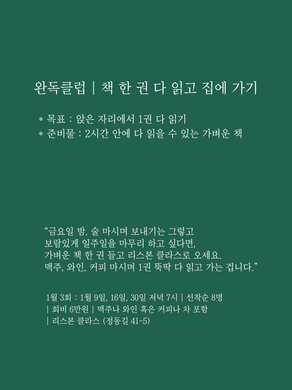 - 대관 문의는 인스타그램 DM이나 카카오톡 채널 [리스본클라스]로 연락 주시면 됩니다.