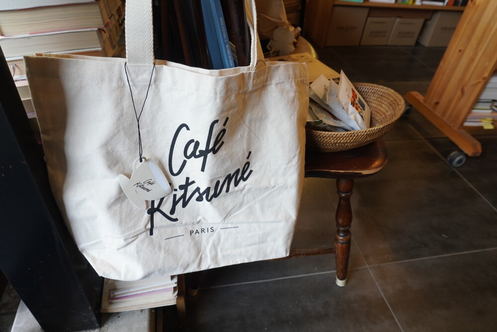 카페 키츠네 라떼 에코백 : 가로 세로 폭 손잡이 = 45 35 12 24 사이즈입니다.